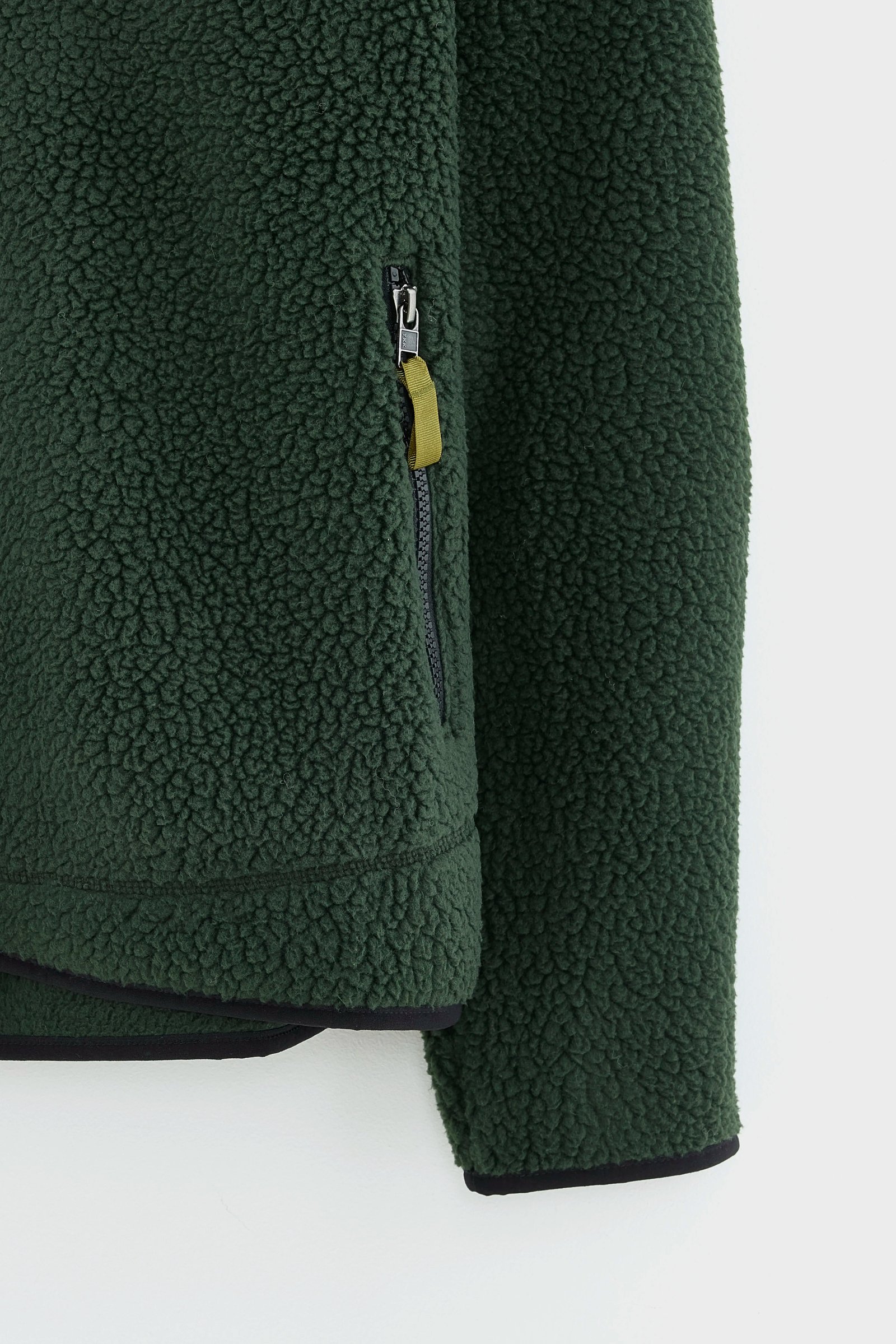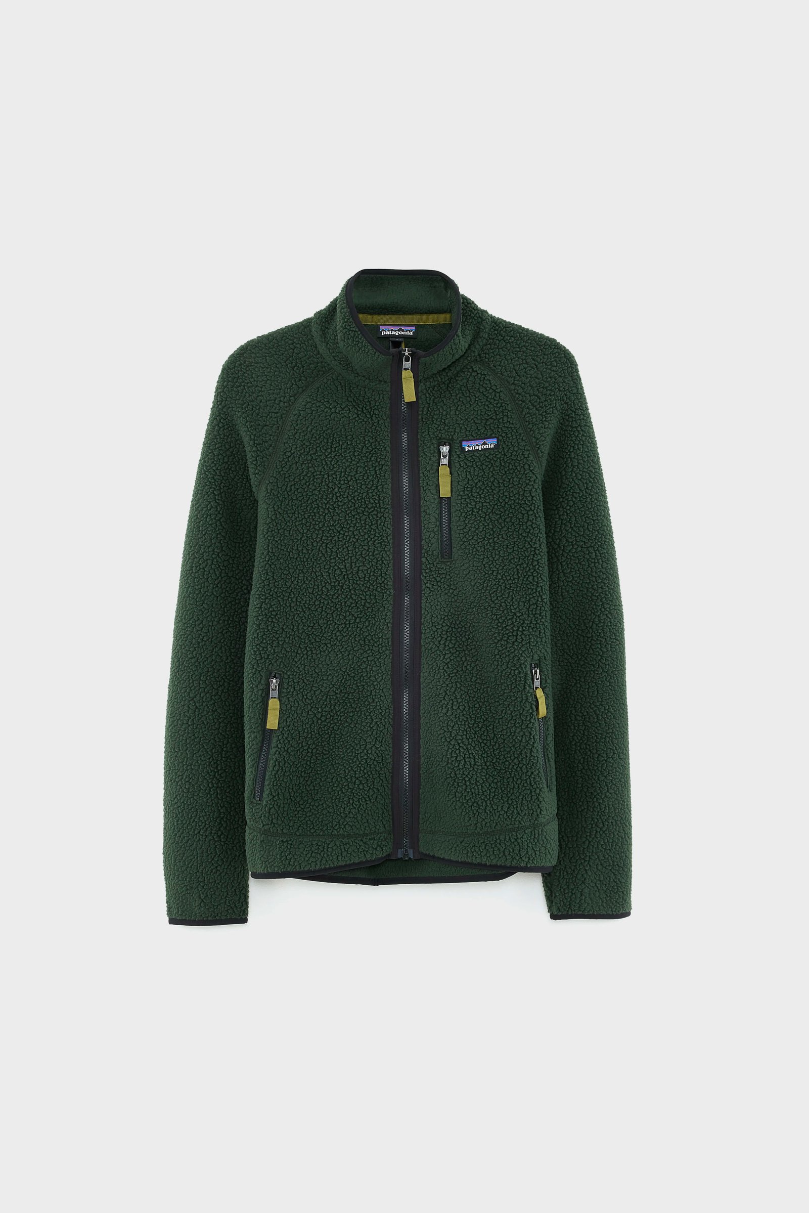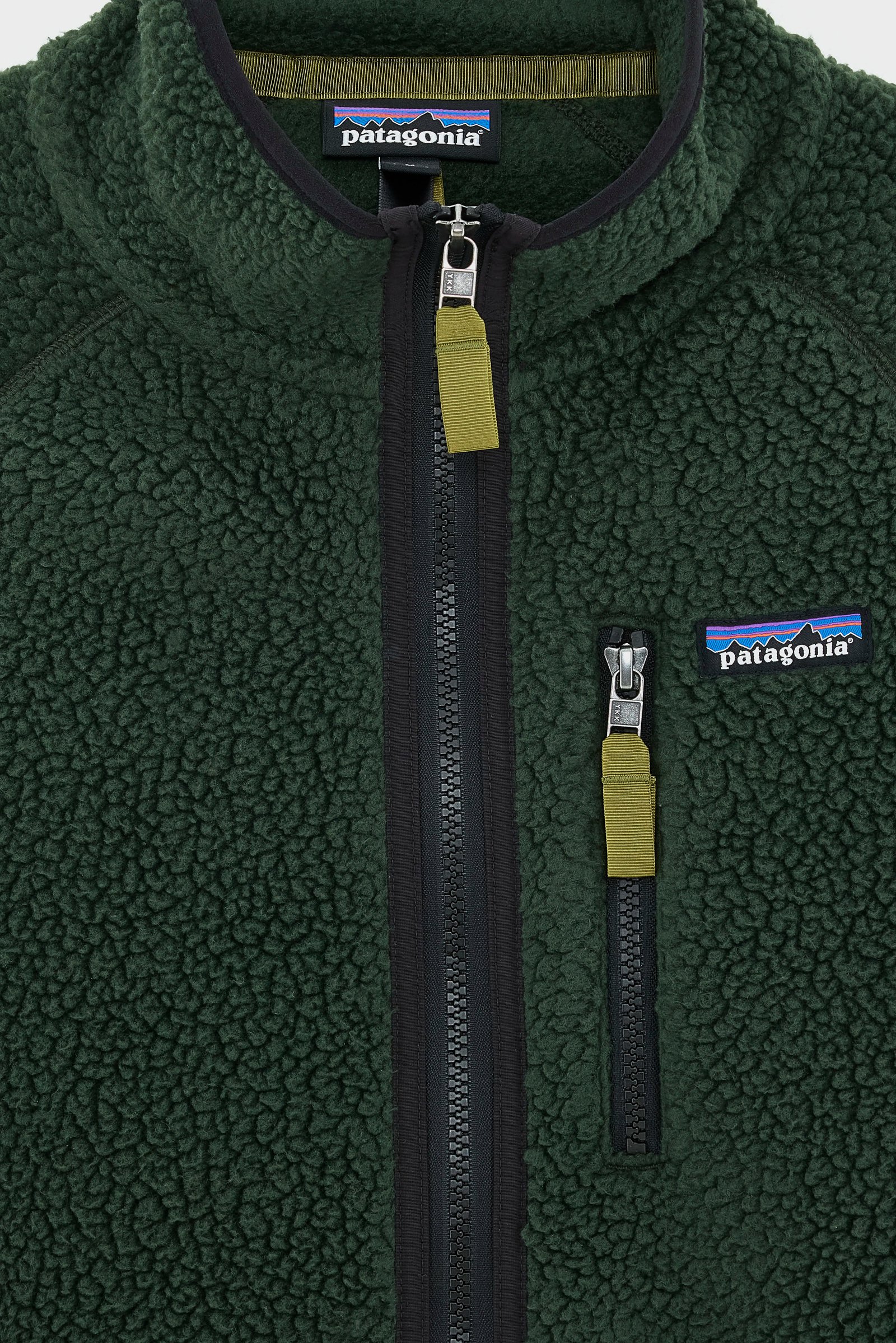 The Patagonia Men’s Retro Pile Fleece Jacket features double-sided shearling crafted from 100% recycled polyester with a full-zip closure.