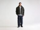 Regular fit olive green teddy jacket. with a classic collar. two front pockets. and two side pockets.