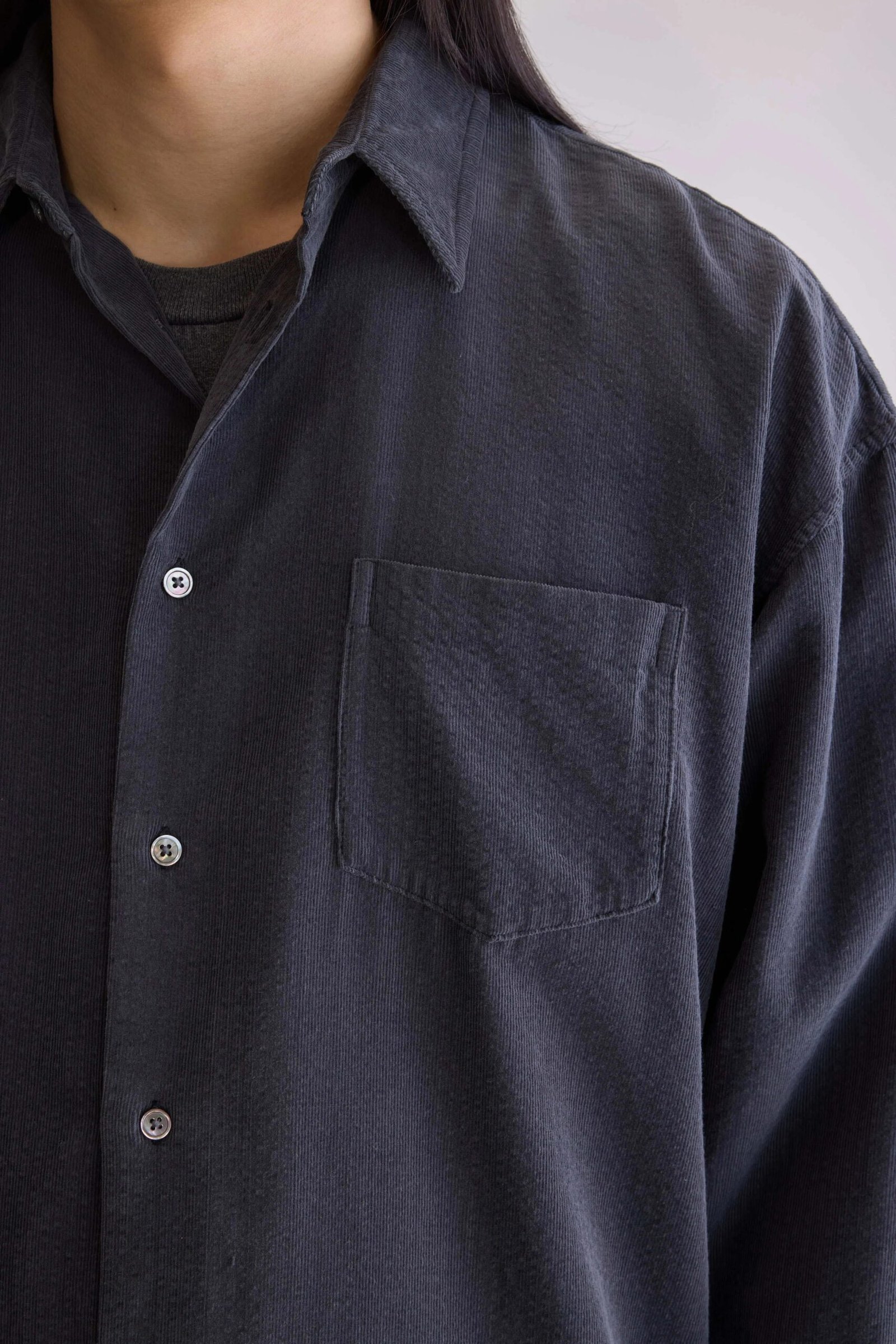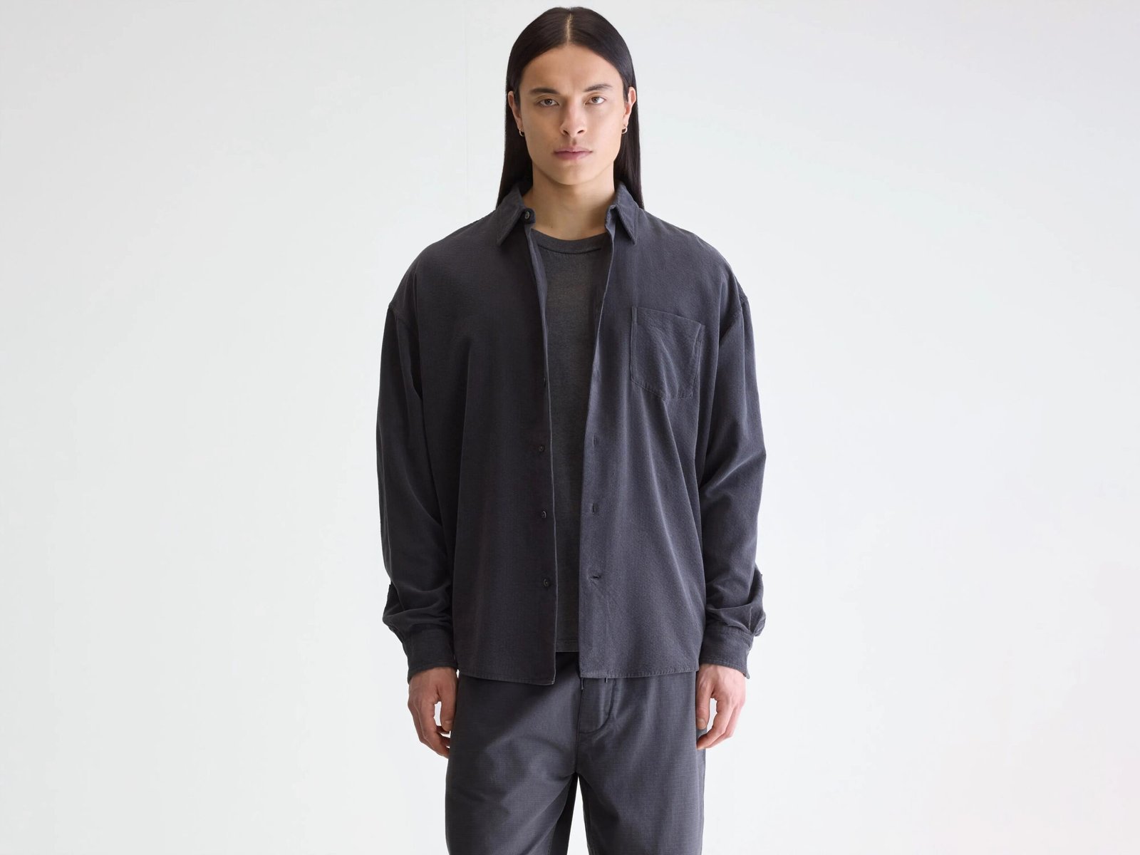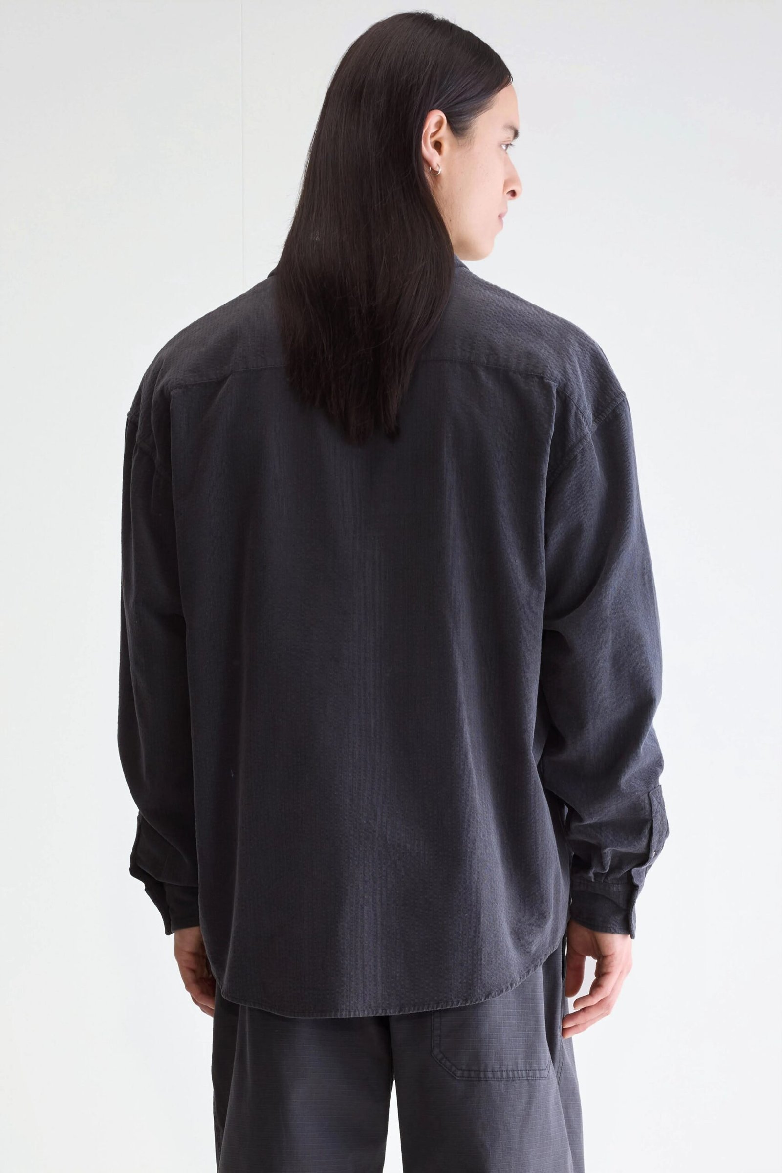 Relaxed button-up shirt with a front chest pocket. in a off-black cotton blend.
