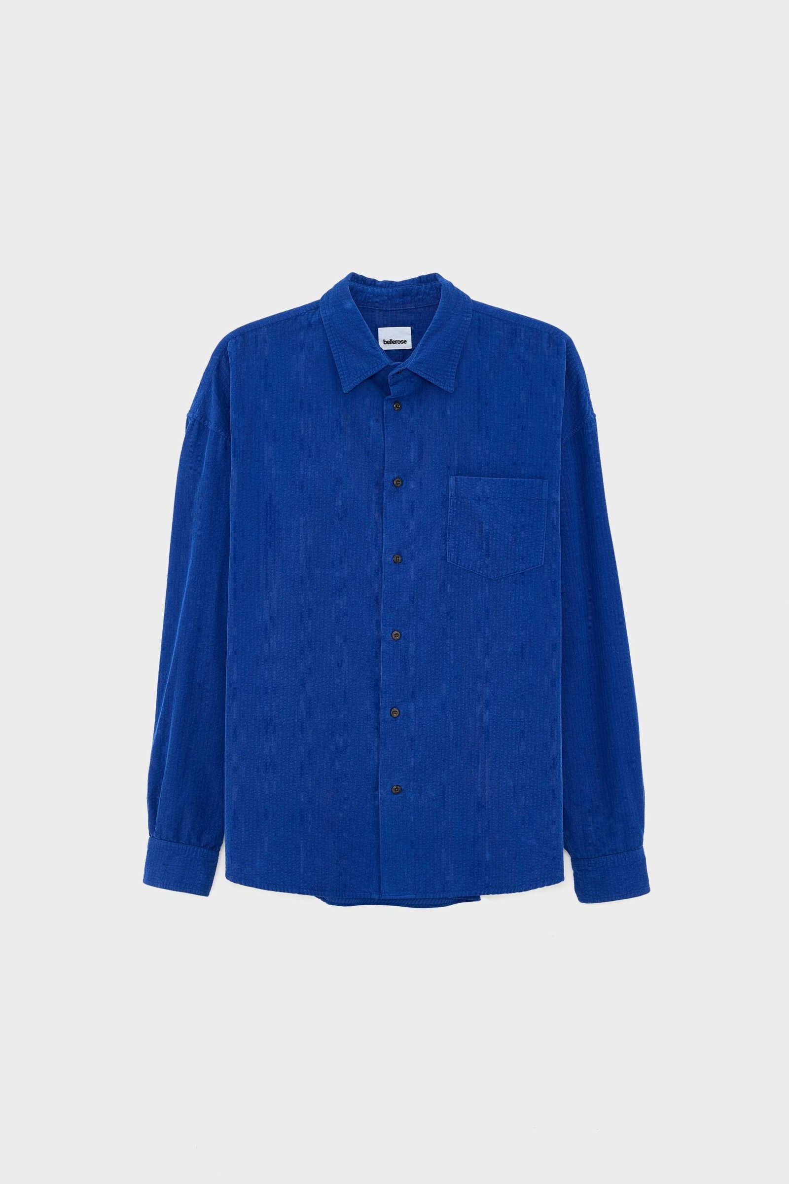 Relaxed button-up shirt with a front chest pocket. in a worker blue cotton blend.